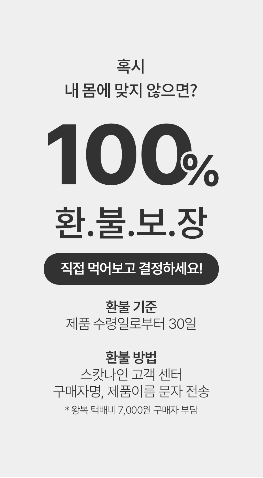 - 고객 귀책 사유로 인한 반품의 경우 왕복 택배비는 고객 부담입니다.